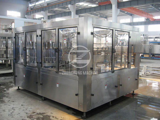 1、瓶裝水生產線整機采用卡瓶頸懸掛運行工態設計,從而使瓶在高速運行狀態下平穩、可靠,同時大大減少了變更件的數量使更換瓶型時更加方便、快捷。
